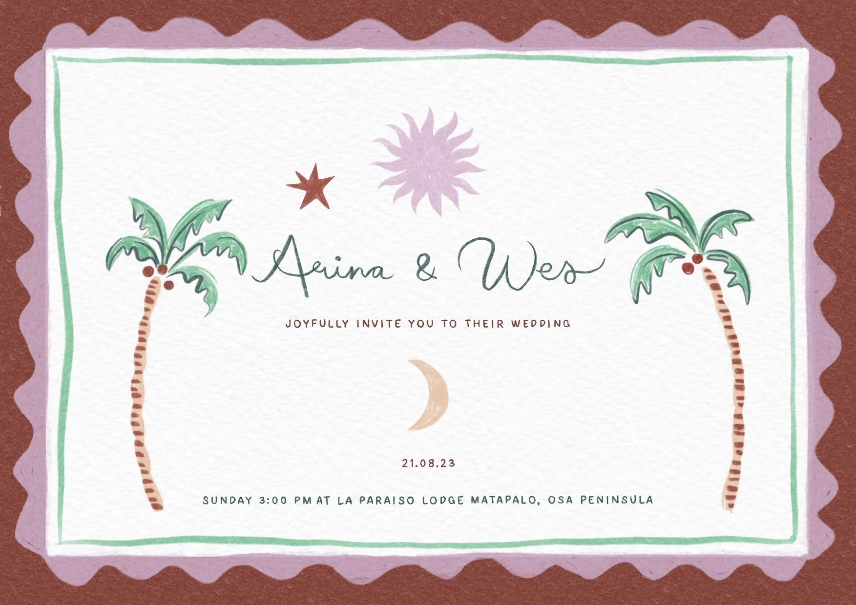 Arina & Wes got married last year in Costa Rica on the beach. I made their wedding stationery; from Save the Date, RSVP & Invitation to Menu & Table Cards.